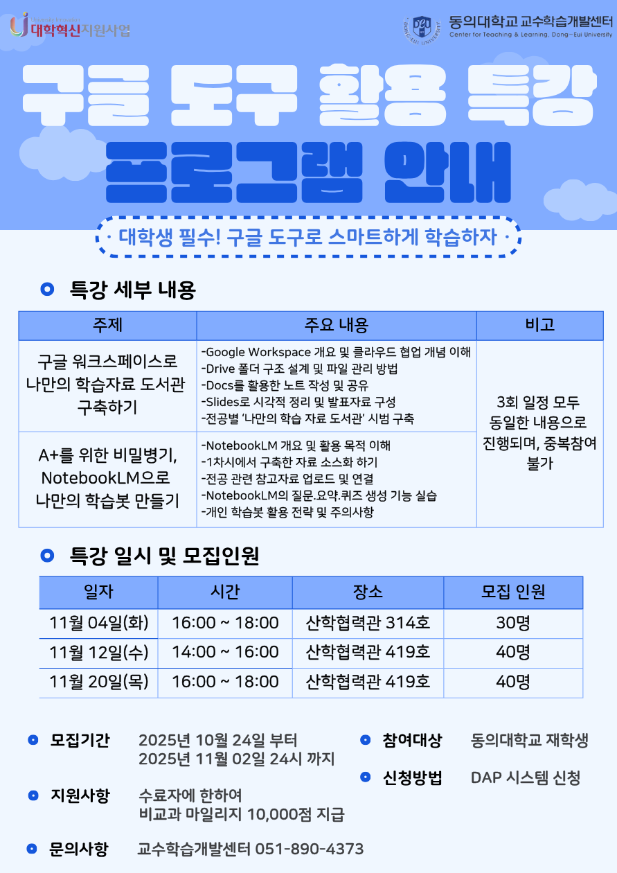 [대학혁신지원사업] 구글 도구 활용 특강 신청 안내