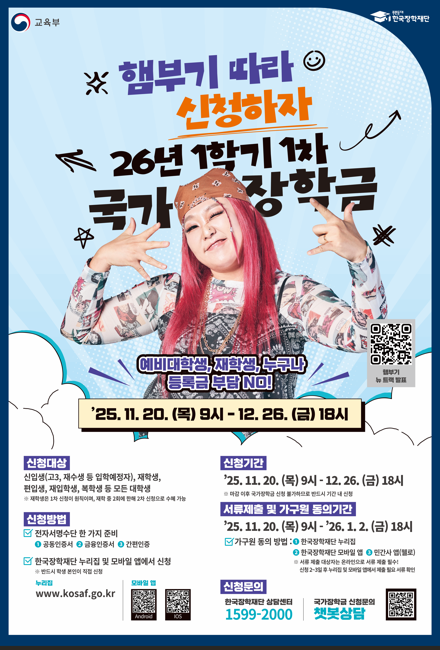 4) 2026-1학기 국가장학금 1차 신청안내의 자세한 사항은 학교홈페이지→ 장학공지에서 확인 바랍니다.