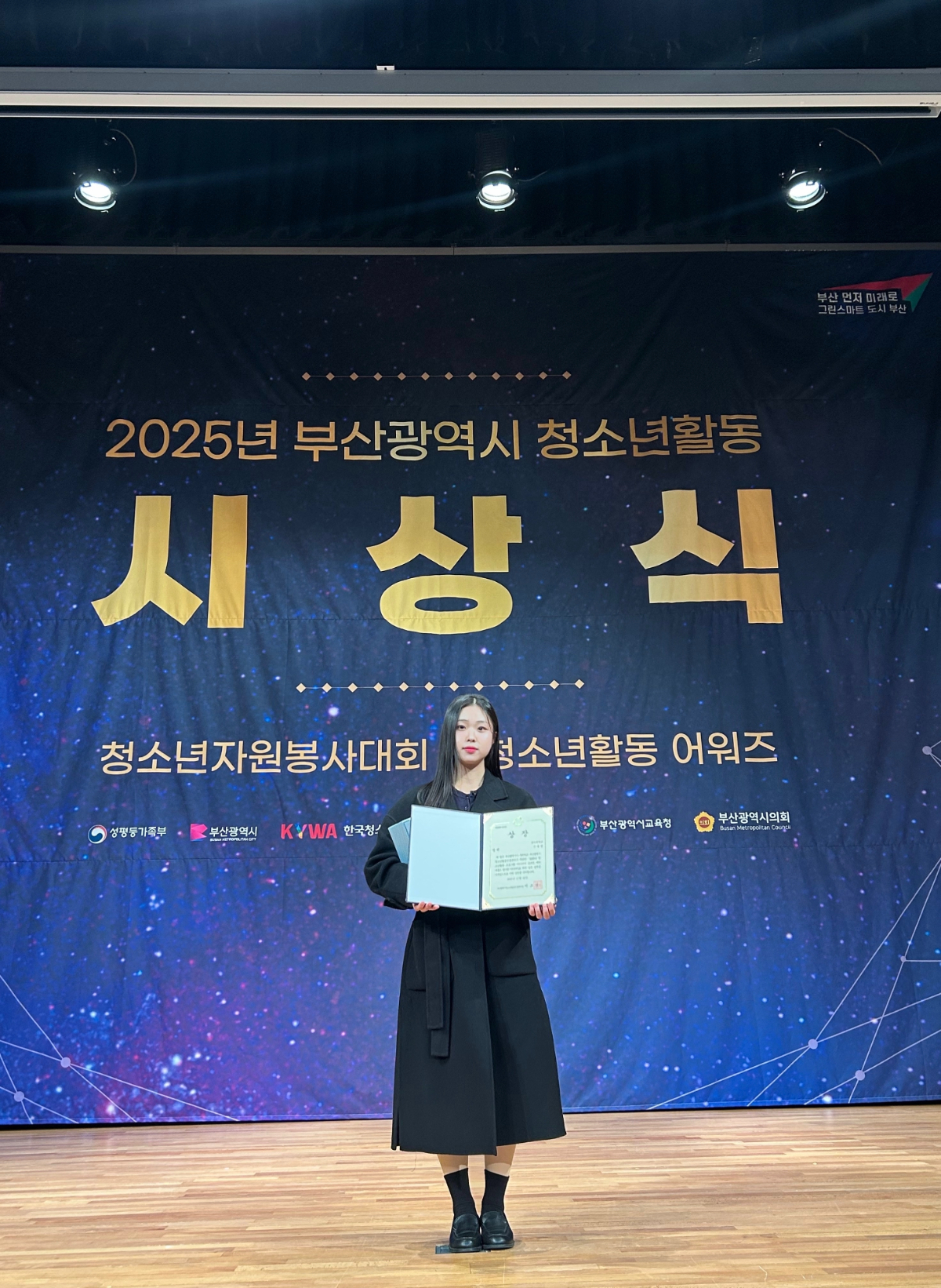 - 동상: 부산광역시청소년활동진흥센터장상 / 윤선재(21학번), 박혜선(23학번), 김연주(25학번)